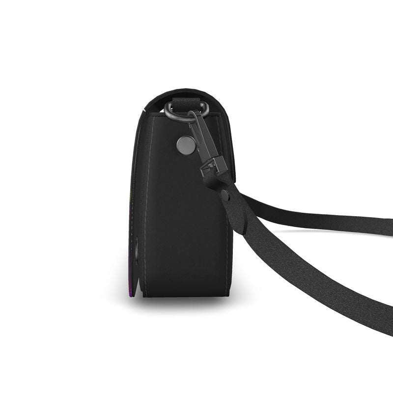 This elegant Flap Over Box Bag adds a refined touch to any outfit, bringing both sophistication and a bold, unique flair. The ideal "Lil Black Bag" by MADUNA is crafted from luxurious soft leather, making it a standout addition to your collection or a thoughtful gift for the incredible women in your life. Showcasing a stunning artwork of a vibrant hummingbird in shades of aqua, purple, red, and pink, this bag is sure to capture attention.