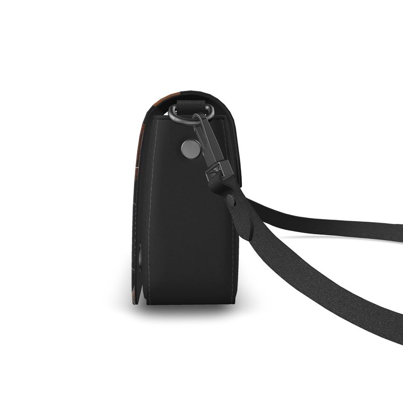 Get ready for compliments and added conversations with this elegant Flap Over Box Bag! It’s designed to elevate any outfit, adding a touch of sophistication and a bold, unique flair. The ideal "Lil Black Bag" by MADUNA, crafted from luxurious soft leather, makes a stunning addition to your collection. This eye-catching bag is sure to turn heads, featuring a striking abstract artwork of wavy lines in rich tones of gray, brown, and rust.